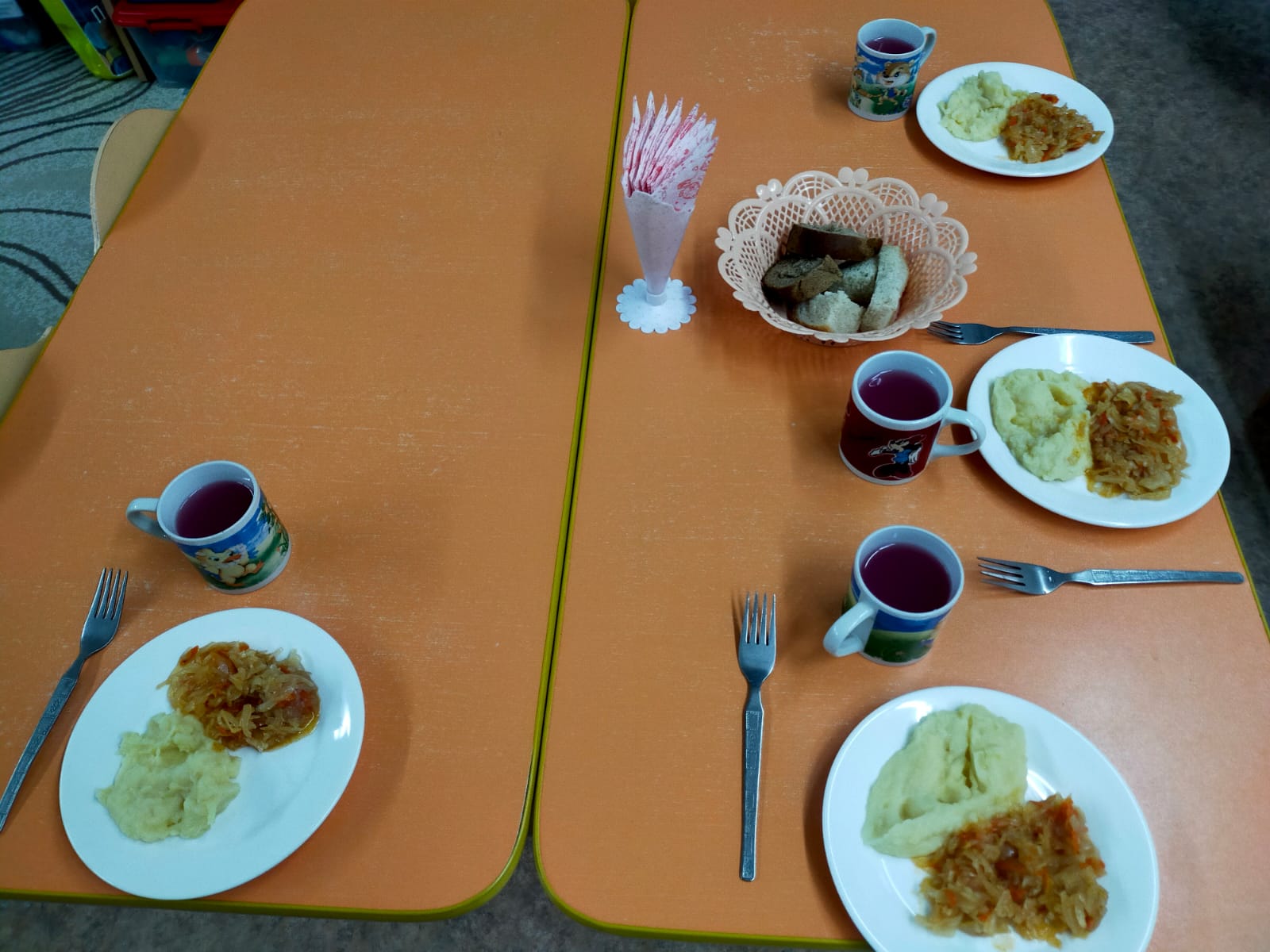 Кешкі ас: Кешенді гарнир (картоп пюресі және бұқтырылған қырыққабат),