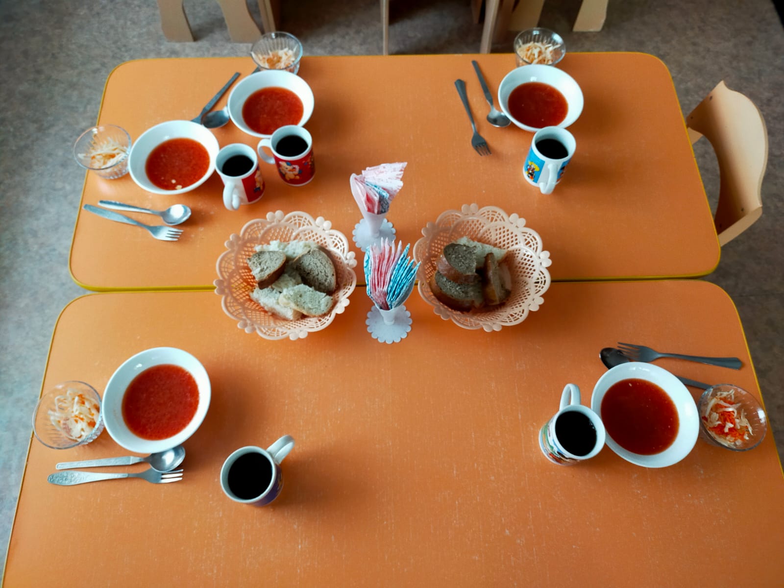 қызылша сорпасы (құс етінің сорпасы) қаймақпен,