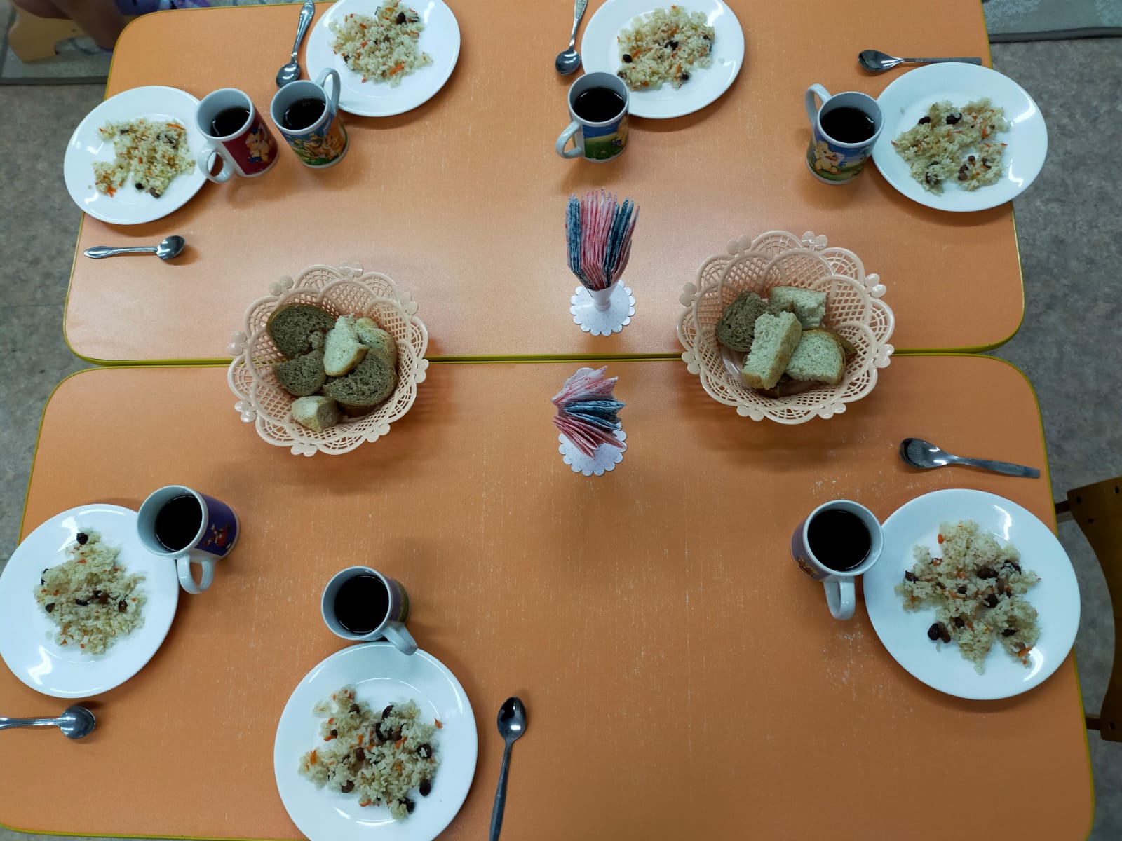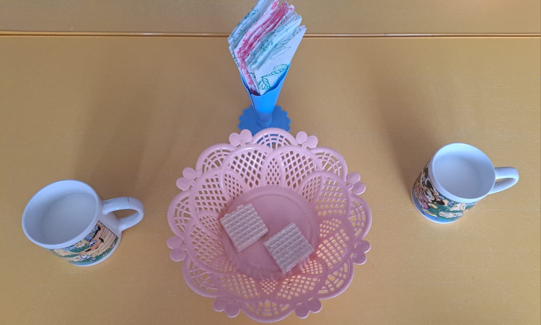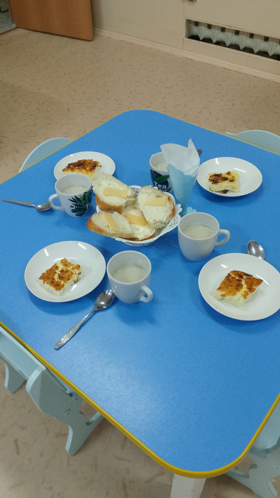 Бесін ас: Сүт, вафли.